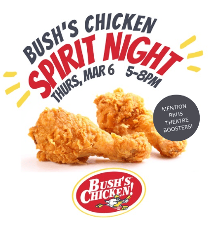 Posted in Uncategorized Winner! Winner! Chicken… Posted on February 21, 2025April 9, 2025 by rrhstheatreadmin March 6th 5-8pm Bush’s Chicken